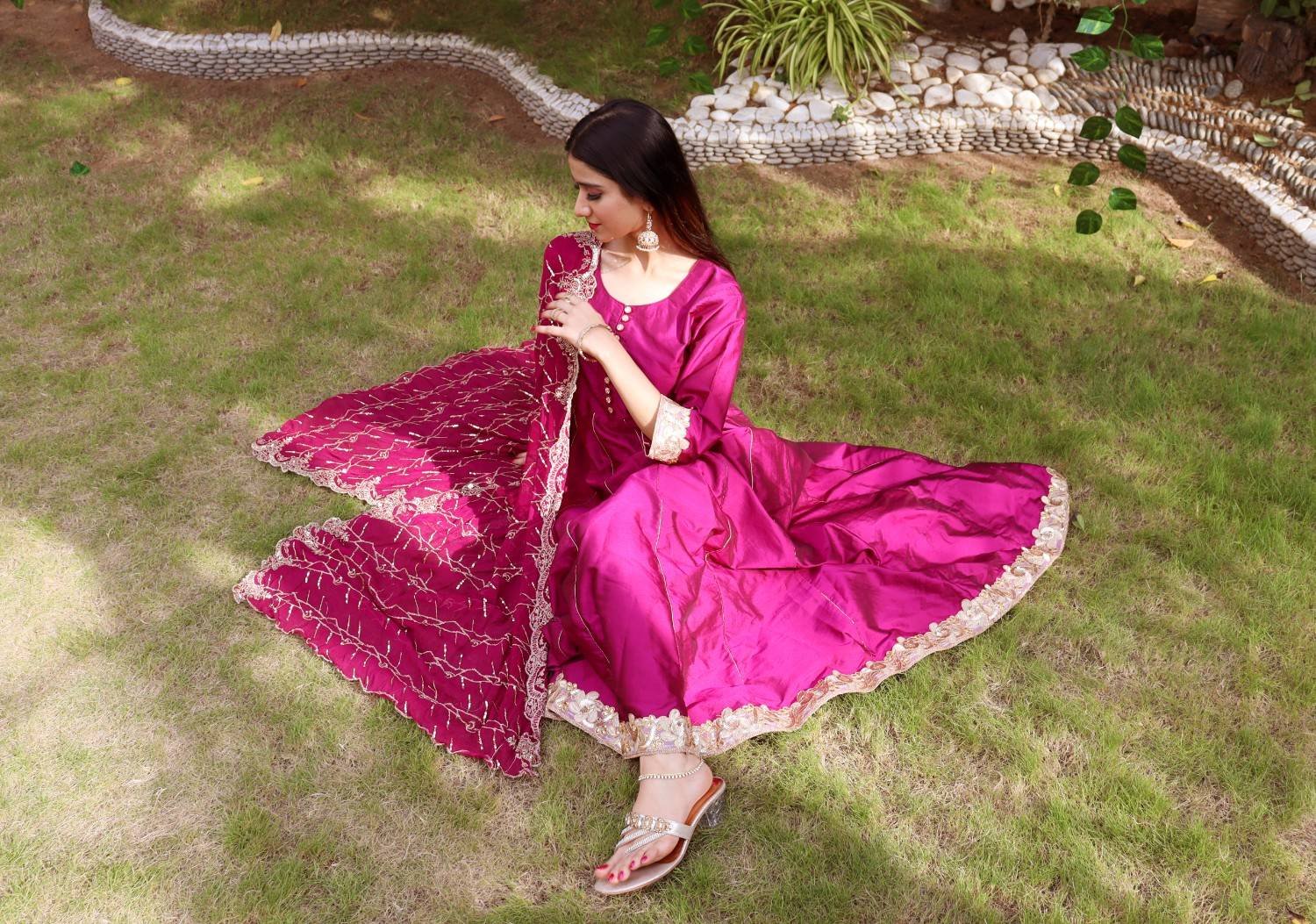 Radiate elegance in this stunning Magenta Frock with Dupatta set. The vibrant magenta hue adds a pop of color to your wardrobe, while the accompanying dupatta enhances the outfit’s charm. Custom-designed for a flattering fit, this 2-piece set is perfect for festive occasions, celebrations, or any special event where you want to make a statement.